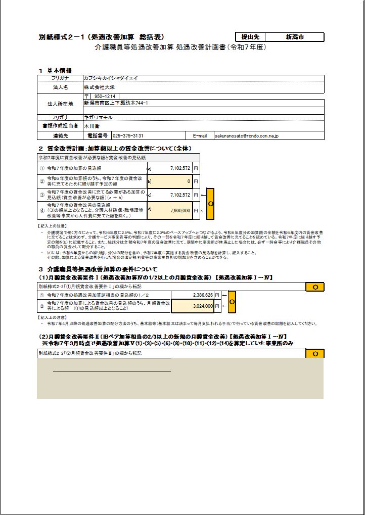 処遇改善等令和7年計画